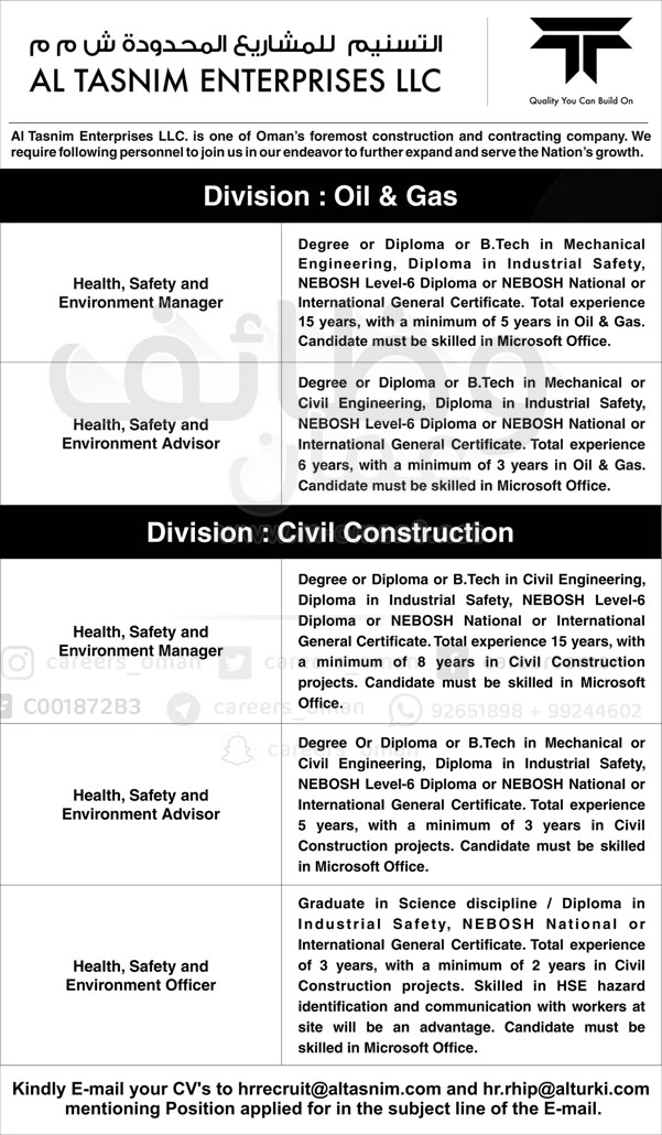 انستجرام : careers__oman تويتر : careers_oman قناة على التلجرام : careers_oman الفيس بوك: careersoman سناب شات : careers_oman تابع جديد الوظائف على أخبار جوجل https://news.google.com/s/CBIwpO6O2q...ar&sceid=OM:ar