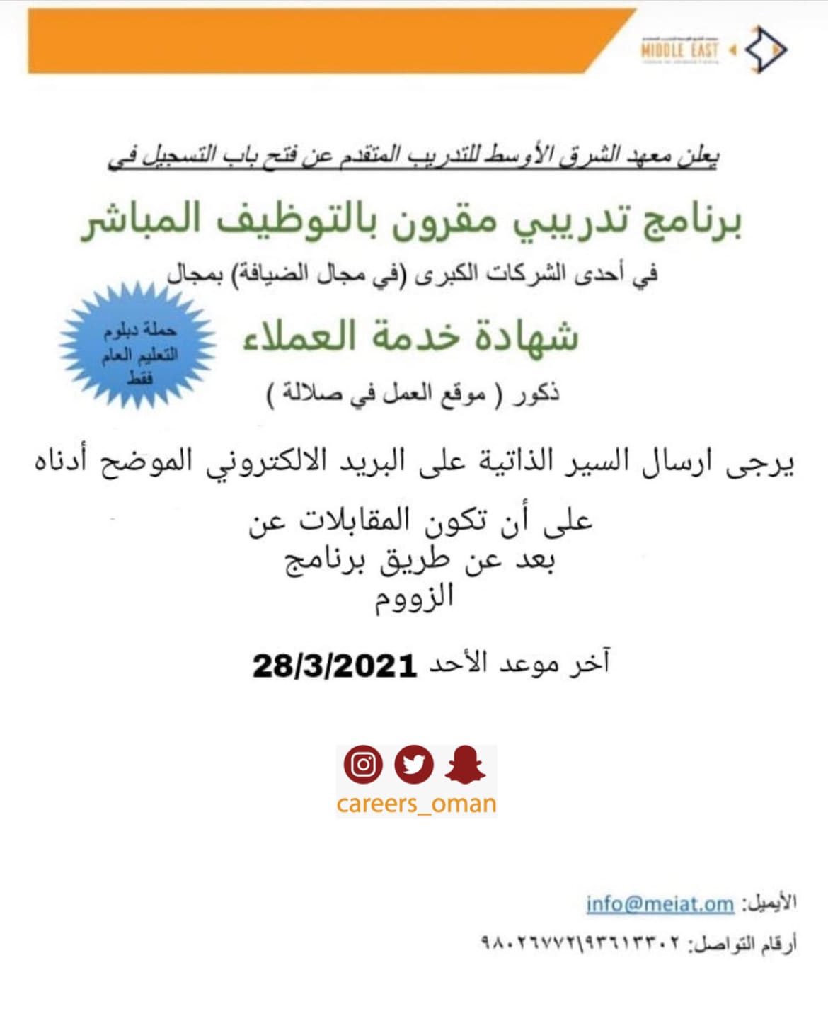 الموضوع: الاربعاء 24 / 3 / 2021 - معهد الشرق الأوسط للتدريب - التسجيل في البرنامج التدريبي المقرون بالتوظيف