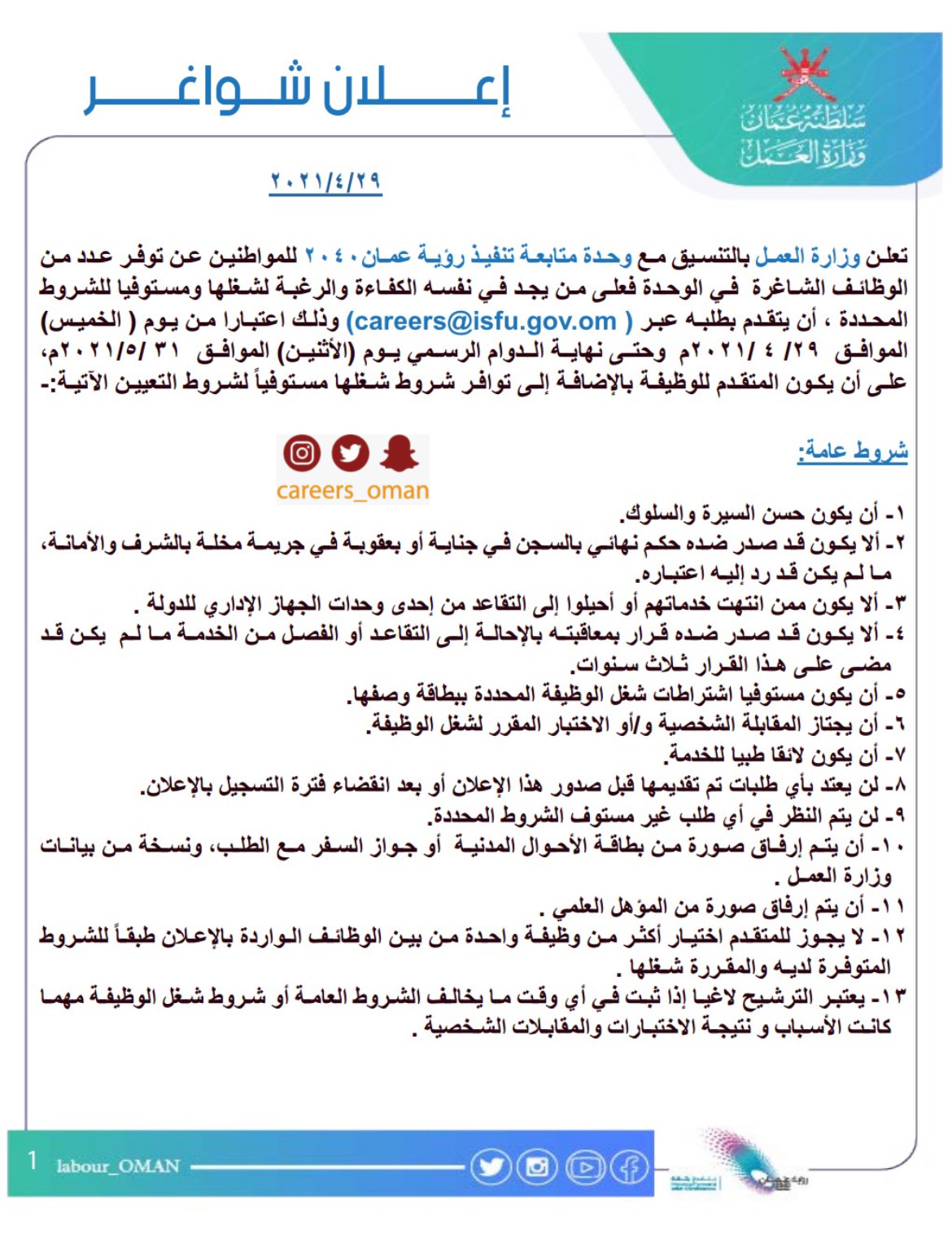 تويتر : careers_oman