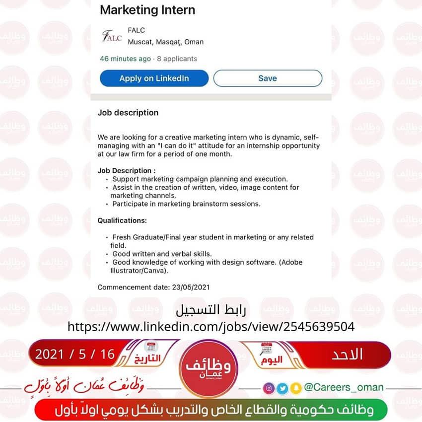 رابط التسجيل https://www.linkedin.com/jobs/view/2545639504