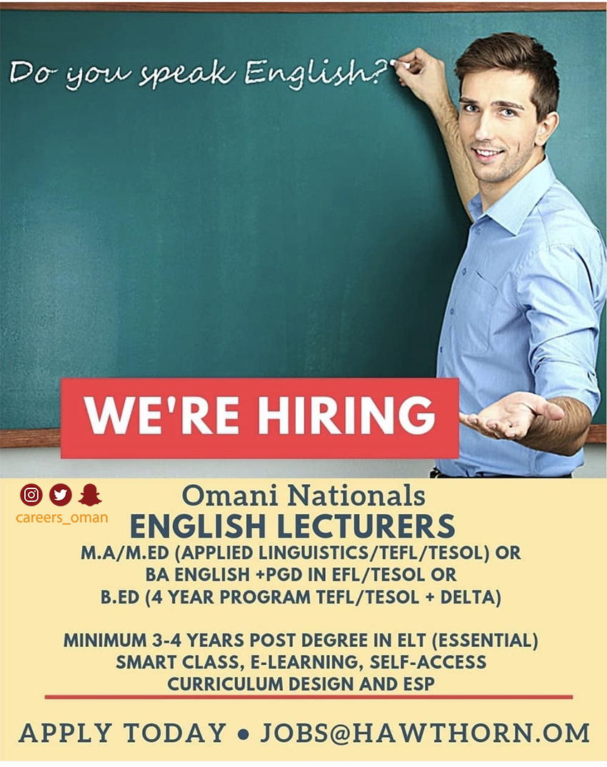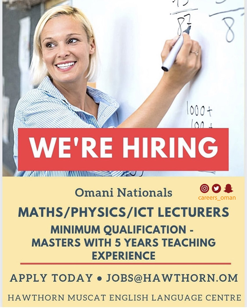 الموضوع: الاثنين 31 / 5 / 2021 - مركز هوثورن مسقط لتعليم اللغة الإنجليزية - وظائف شاغرة