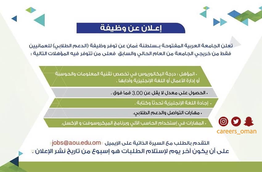 الموضوع: السبت 19 / 6 / 2021 - الجامعة العربية المفتوحة - وظيفة شاغرة ( الدعم الطلابي )