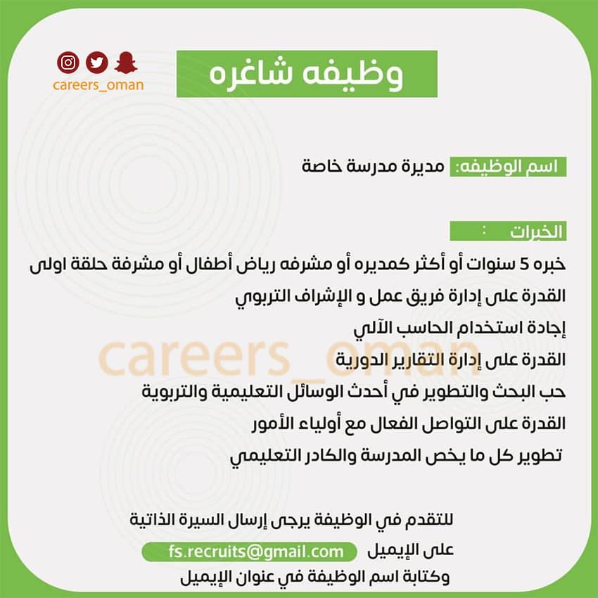 الموضوع: الاحد 25 / 7 / 2021 - مدرسة خاصة - وظيفة شاغرة ( مديرة مدرسة خاصة )