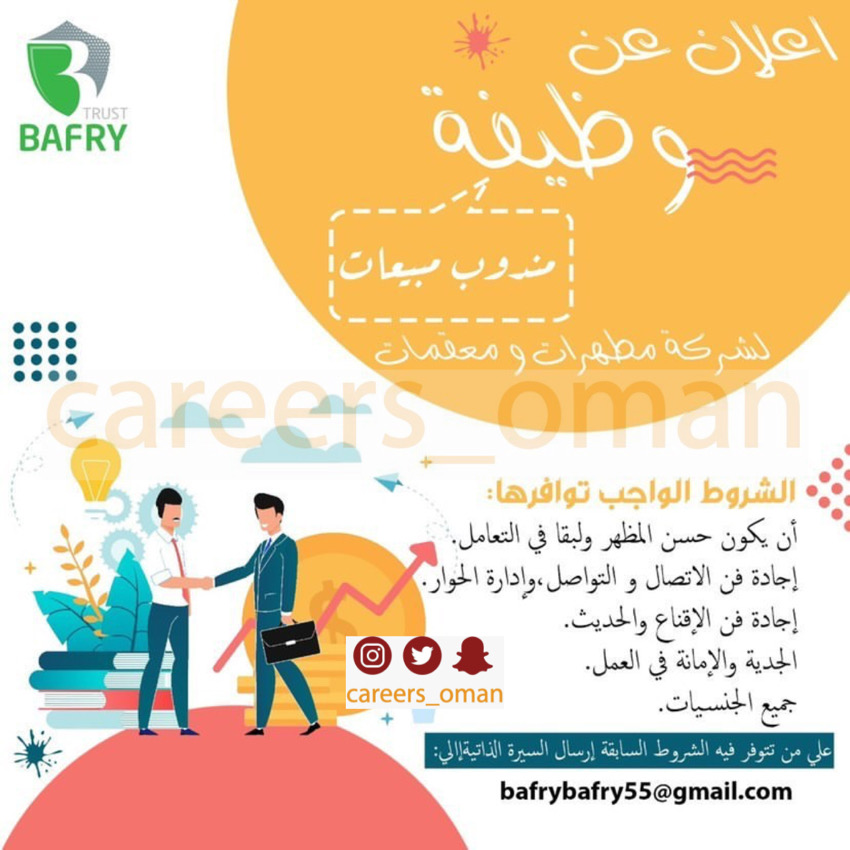 الموضوع: الاثنين 26 / 7 / 2021 - شركة مطهرات ومعقمات في الخوض - وظيفة شاغرة ( مندوب مبيعات )