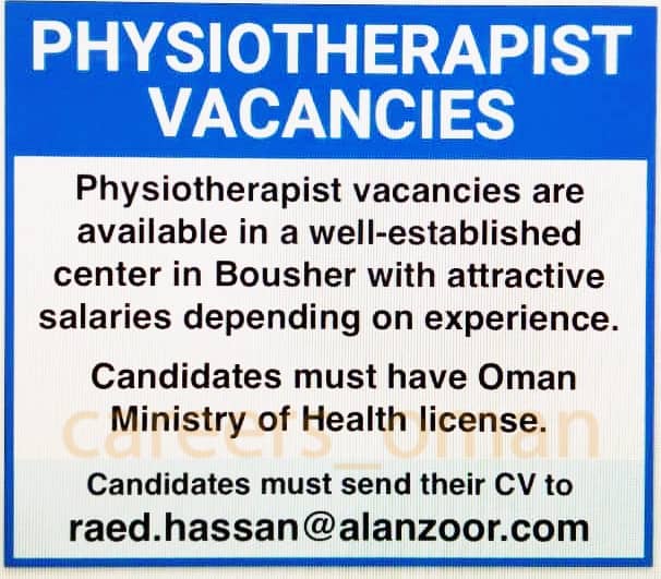 الموضوع: الثلاثاء 27 / 7 / 2021 - مركز للعلاج الطبيعي في بوشر - وظيفة شاغرة