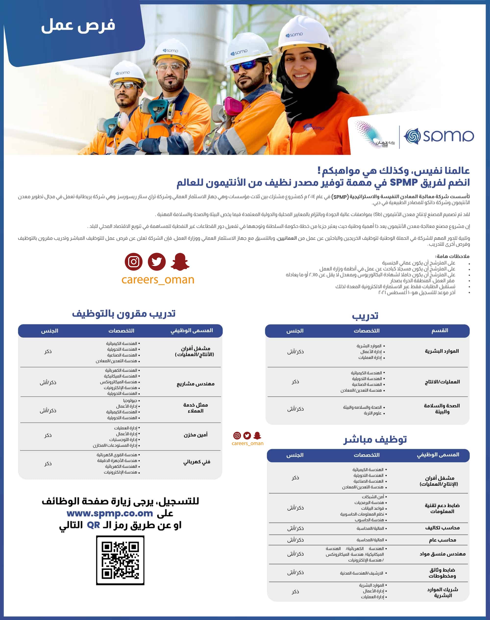 رابط التسجيل https://www.spmp.co.om/ar/careers-ar