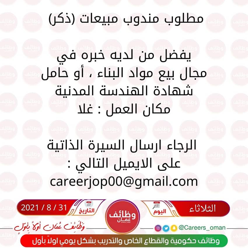 الموضوع: الثلاثاء 31 / 9 / 2021 - شركة رائدة في غلا - وظيفة شاغرة ( مندوب مبيعات ذكر )