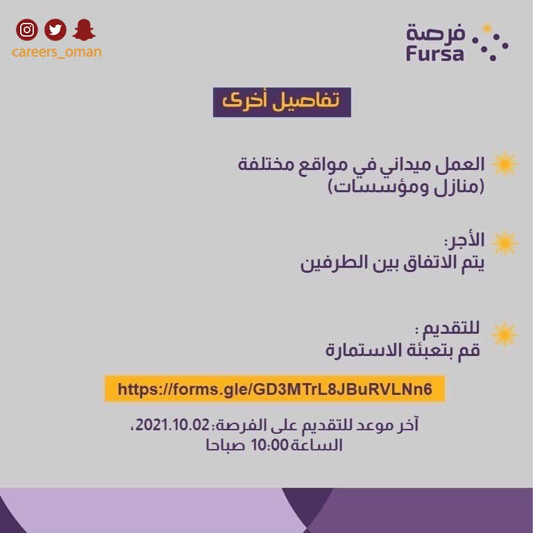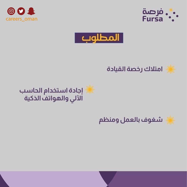 انستجرام : careers__oman تويتر : careers_oman قناة على التلجرام : careers_oman الفيس بوك: careersoman سناب شات : careers_oman تابع جديد الوظائف على أخبار جوجل https://news.google.com/s/CBIwpO6O2q...ar&sceid=OM:ar