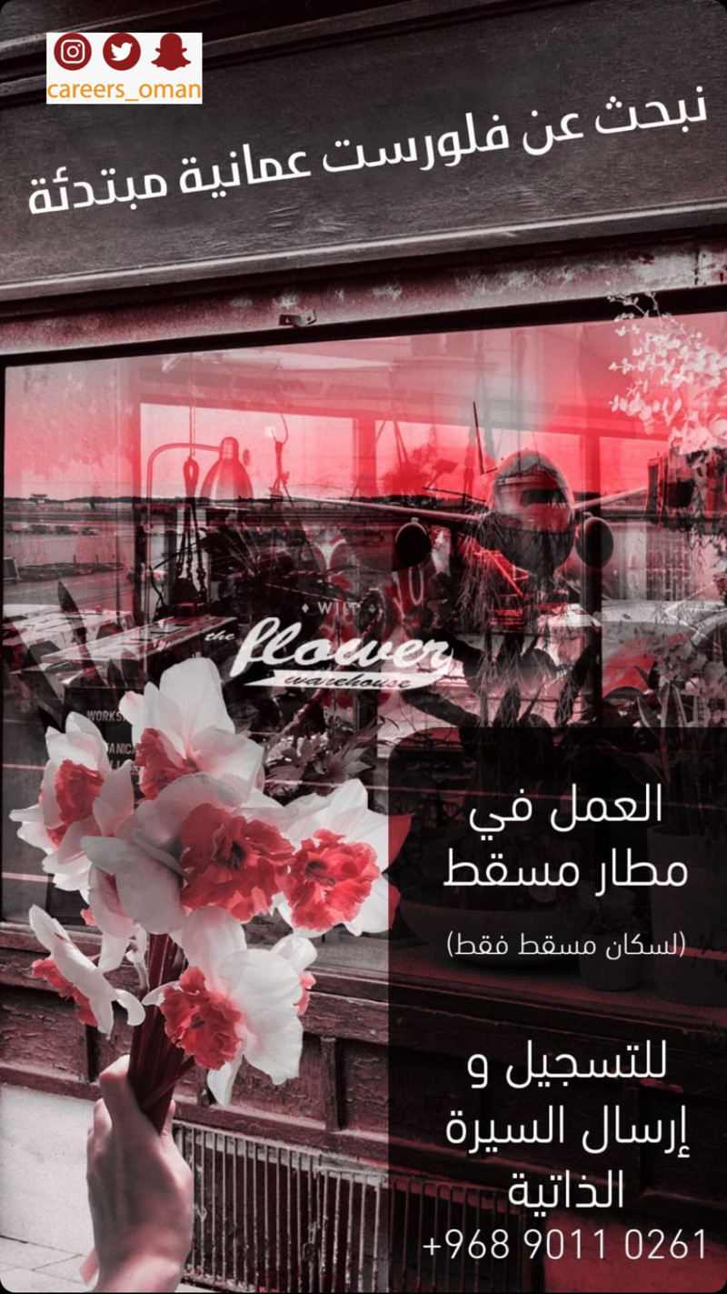 • السبت 23 / 10 / 2021 - flower warehouse - وظيفة شاغرة ( منسقة زهور العمل في مطار مسقط )