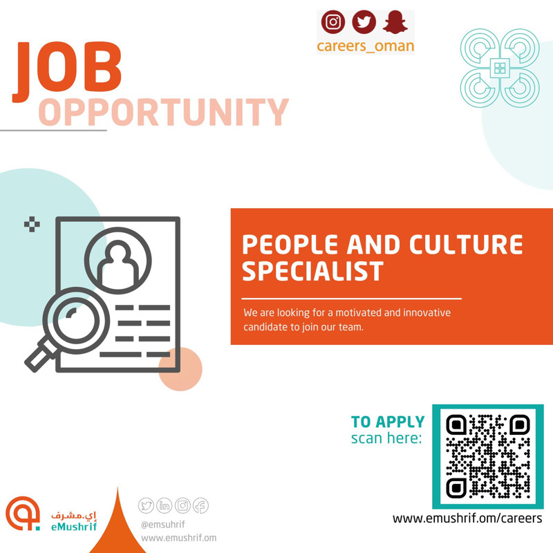 • الثلاثاء 9 / 11 / 2021 - إي مشرف - وظيفة شاغرة ( People and Culture Specialist )