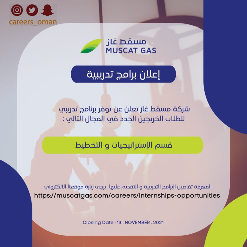 رابط التسجيل https://muscatgas.com/careers/internships-opportunities
