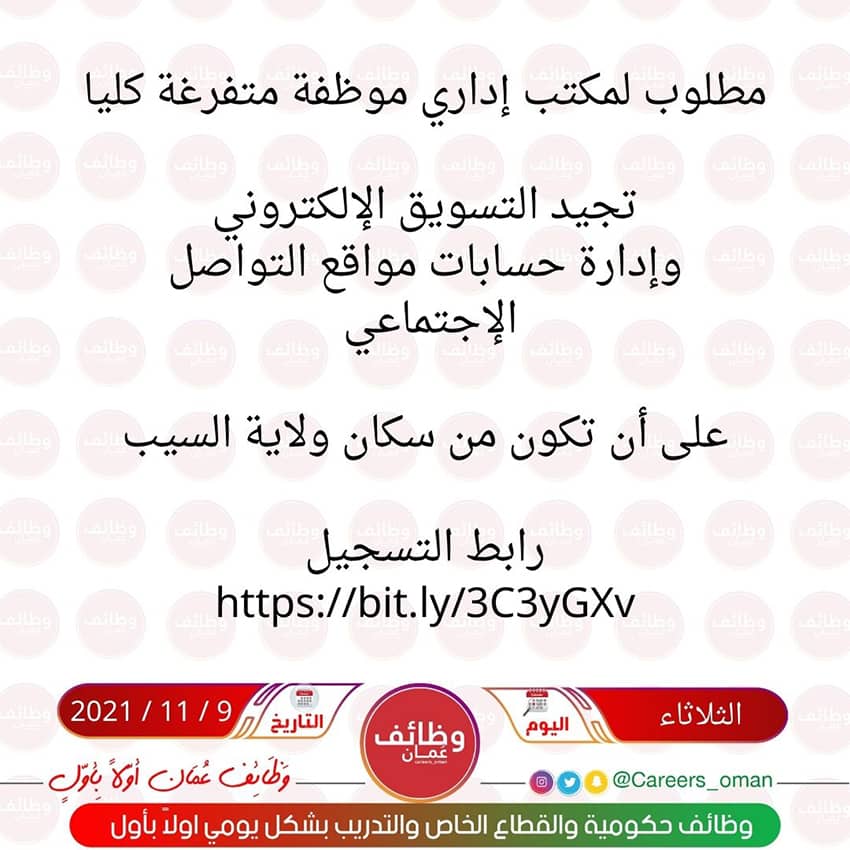 انستجرام : careers__oman تويتر : careers_oman قناة على التلجرام : careers_oman الفيس بوك: careersoman سناب شات : careers_oman تابع جديد الوظائف على أخبار جوجل https://news.google.com/s/CBIwpO6O2q...ar&sceid=OM:ar