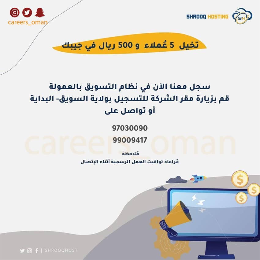 • الاربعاء 10 / 11 / 2021 - شركة الشروق للاستضافة - فرص عمل شاغرة ( التسويق بالعمولة )