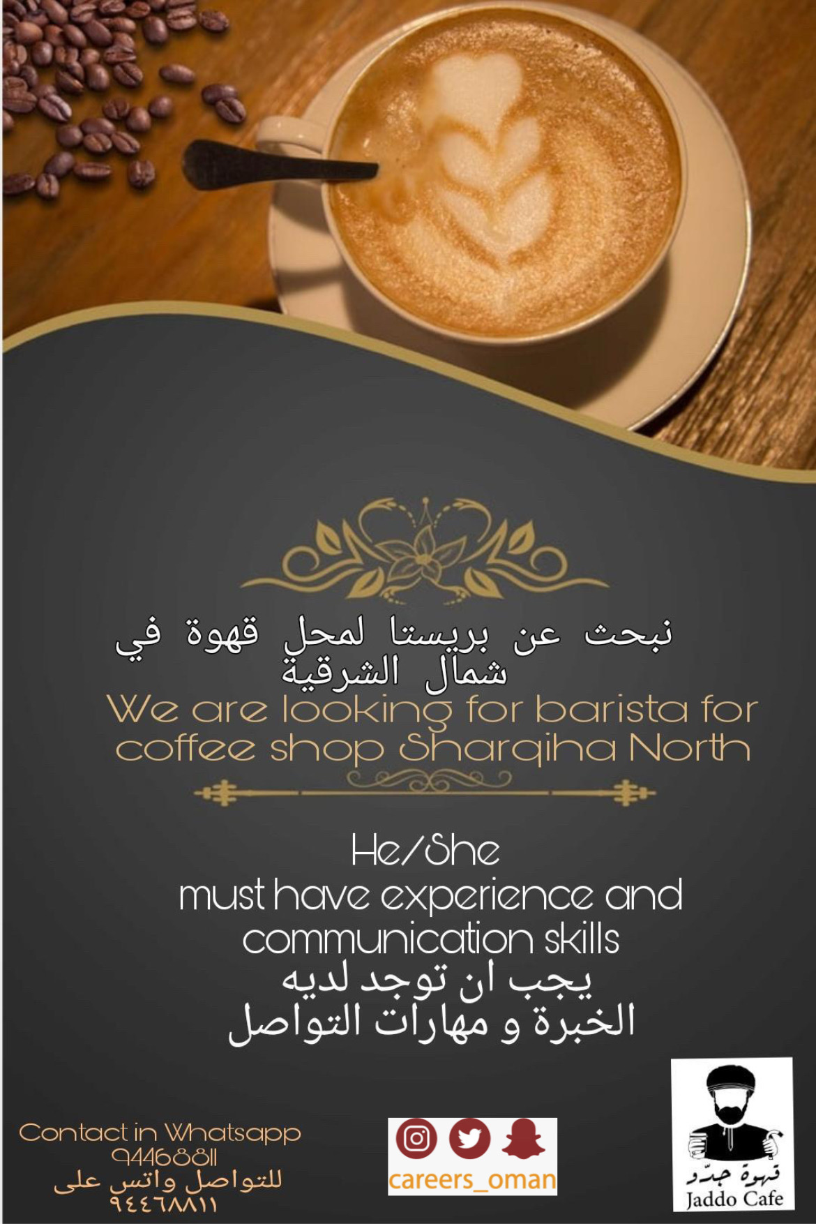 • الجمعة 10 / 12 / 2021 - محل قهوة في شمال الشرقية - وظيفة شاغرة ( بريستا )