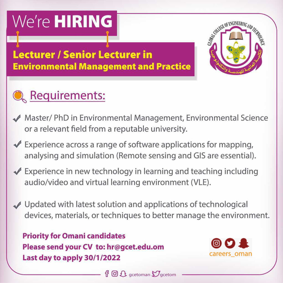 • الخميس 27 / 1 / 2022 - الكلية العالمية للهندسة والتكنولوجيا - وظيفة شاغرة