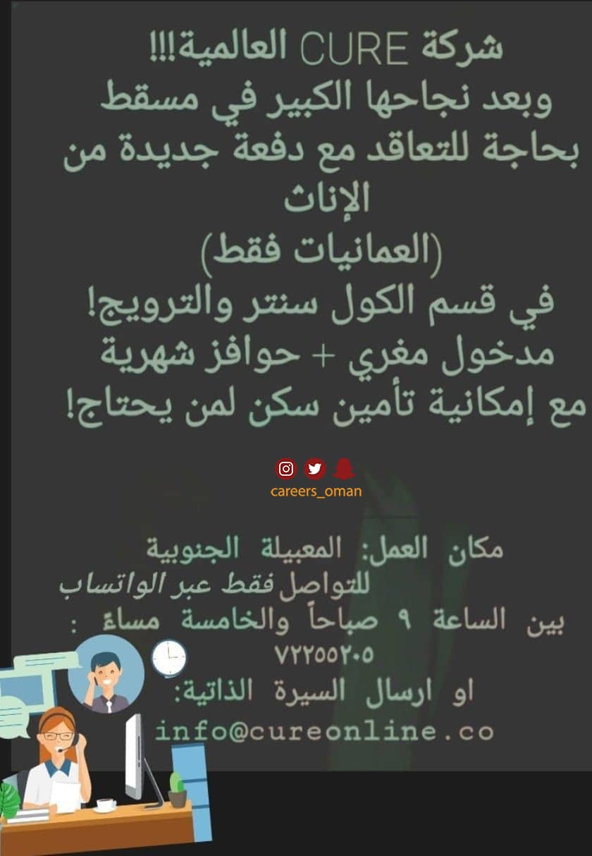 الموضوع: السبت 26 / 2 / 2022 - شركة CURE العالمية في المعبيلة - فرص عمل شاغرة ( الكول سنتر والترويج )