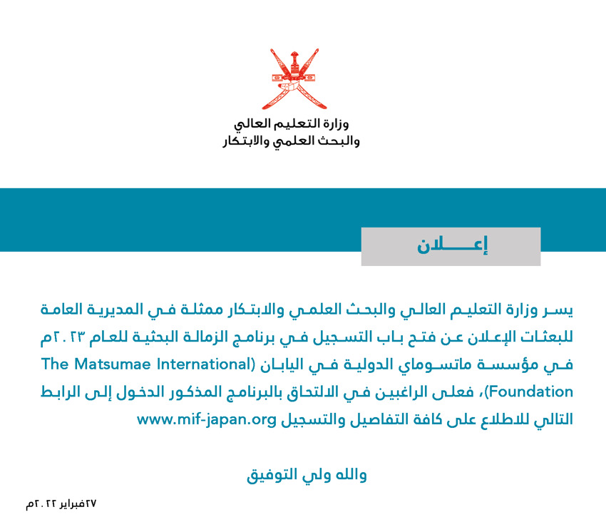 • الاحد 27 / 2 / 2022 - وزارة التعليم العالي والبحث العلمي والابتكار - فتح باب التسجيل في برنامج الزمالة في اليابان