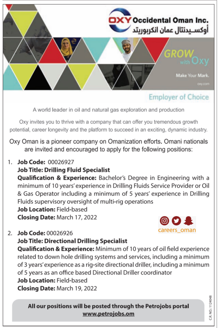 • الاربعاء 9 / 3 / 2022 - اوكسيدنتال عمان - وظائف شاغرة