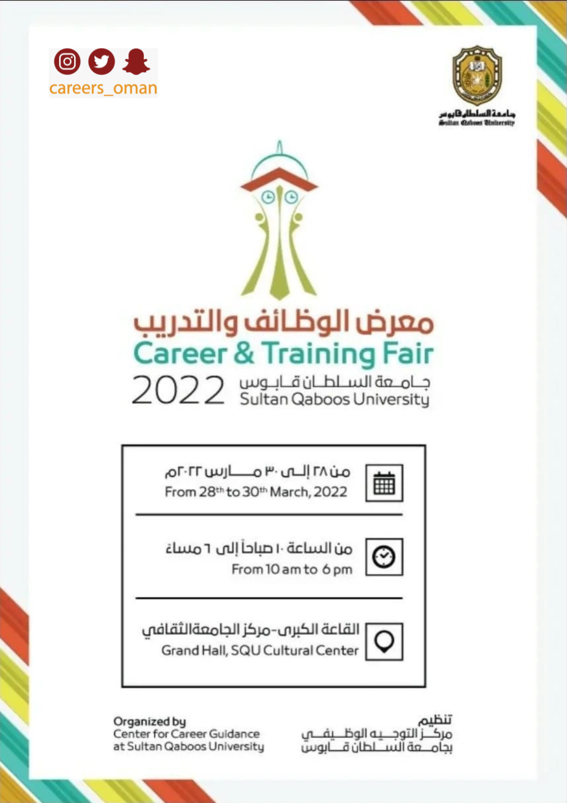 الموضوع: الأربعاء 23 / 3 / 2022 - جامعة السلطان قابوس - معرض الوظائف والتدريب