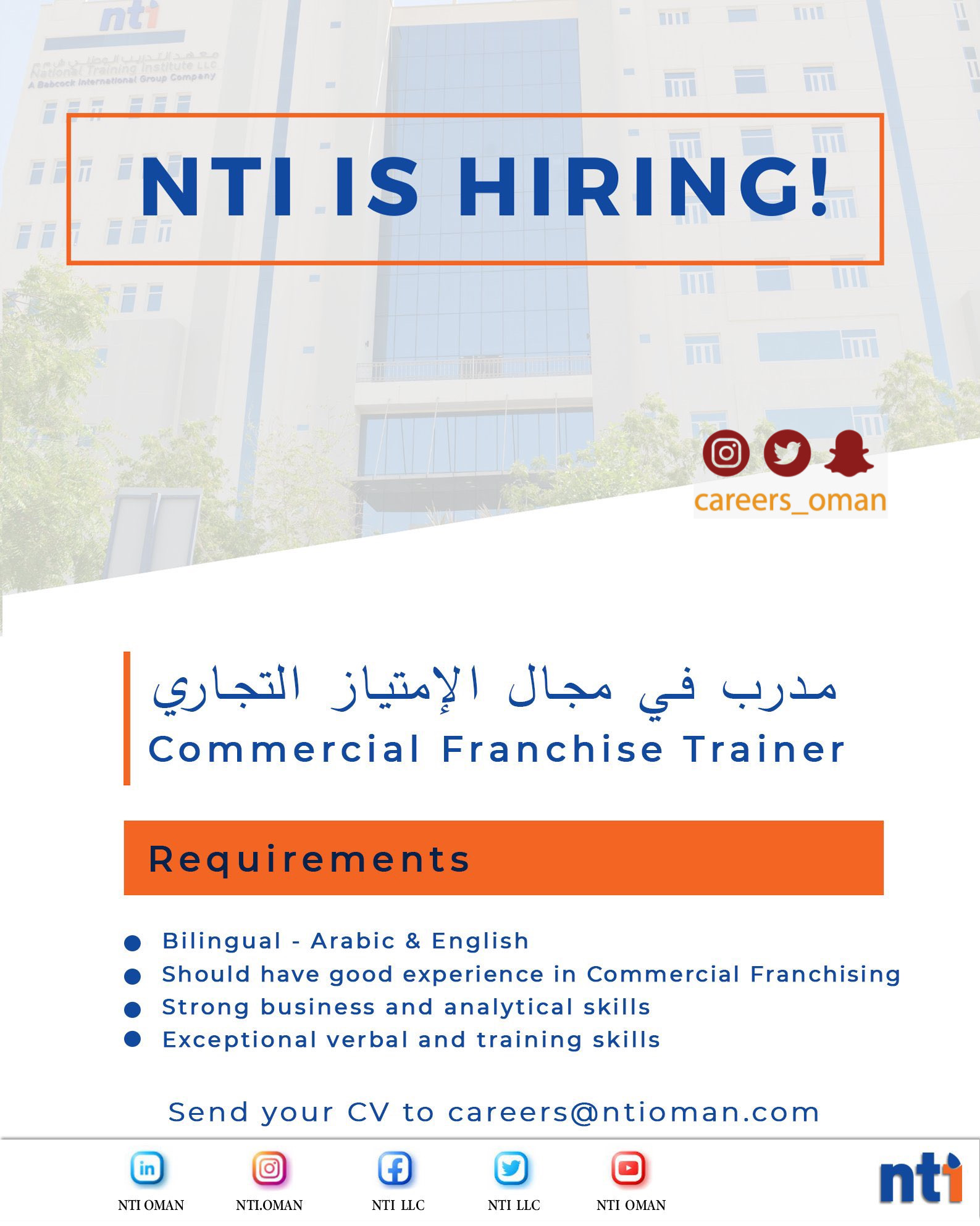 • الخميس 7 / 4 / 2022 - معهد التدريب الوطني - وظيفة شاغرة ( مدرب لديه خبرة في مجال الامتياز التجاري )