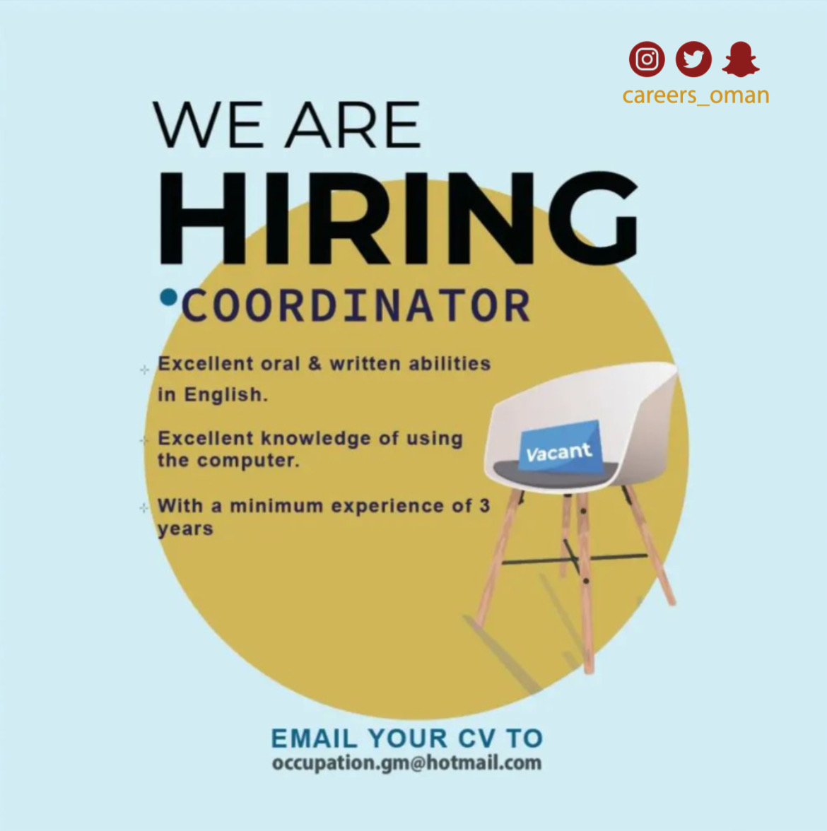 • الثلاثاء 12 / 4 / 2022 - شركة رائدة - وظيفة شاغرة ( منسق )