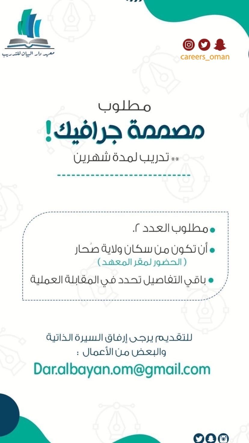 • الاحد 24 / 4 / 2022 - معهد دار البيان للتدريب - فرصة تدريبية للإناث ( مصممة جرافيك العدد 2 )
