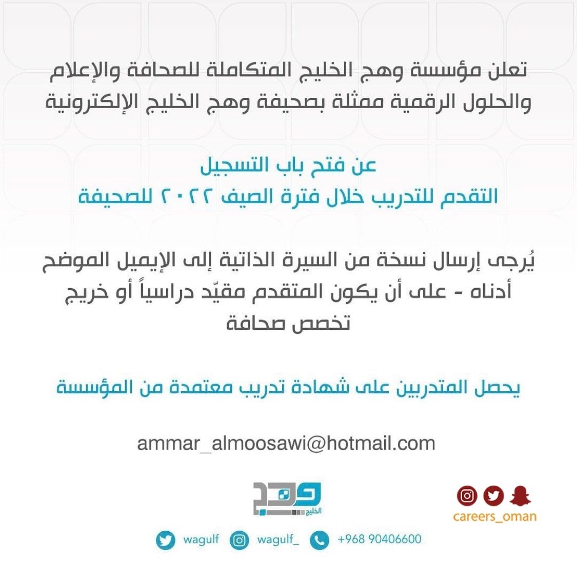الموضوع: الثلاثاء 26 / 4 / 2022 - وهج الخليج المتكاملة للصحافة والإعلام - فرص التدريب الصيفي في الصحيفة لطلبة وخريجي
