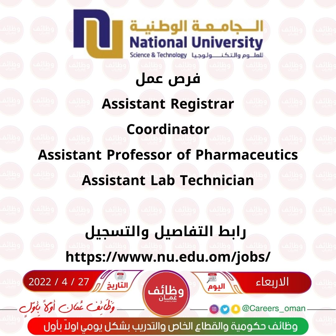 رابط التفاصيل والتسجيل https://www.nu.edu.om/jobs/