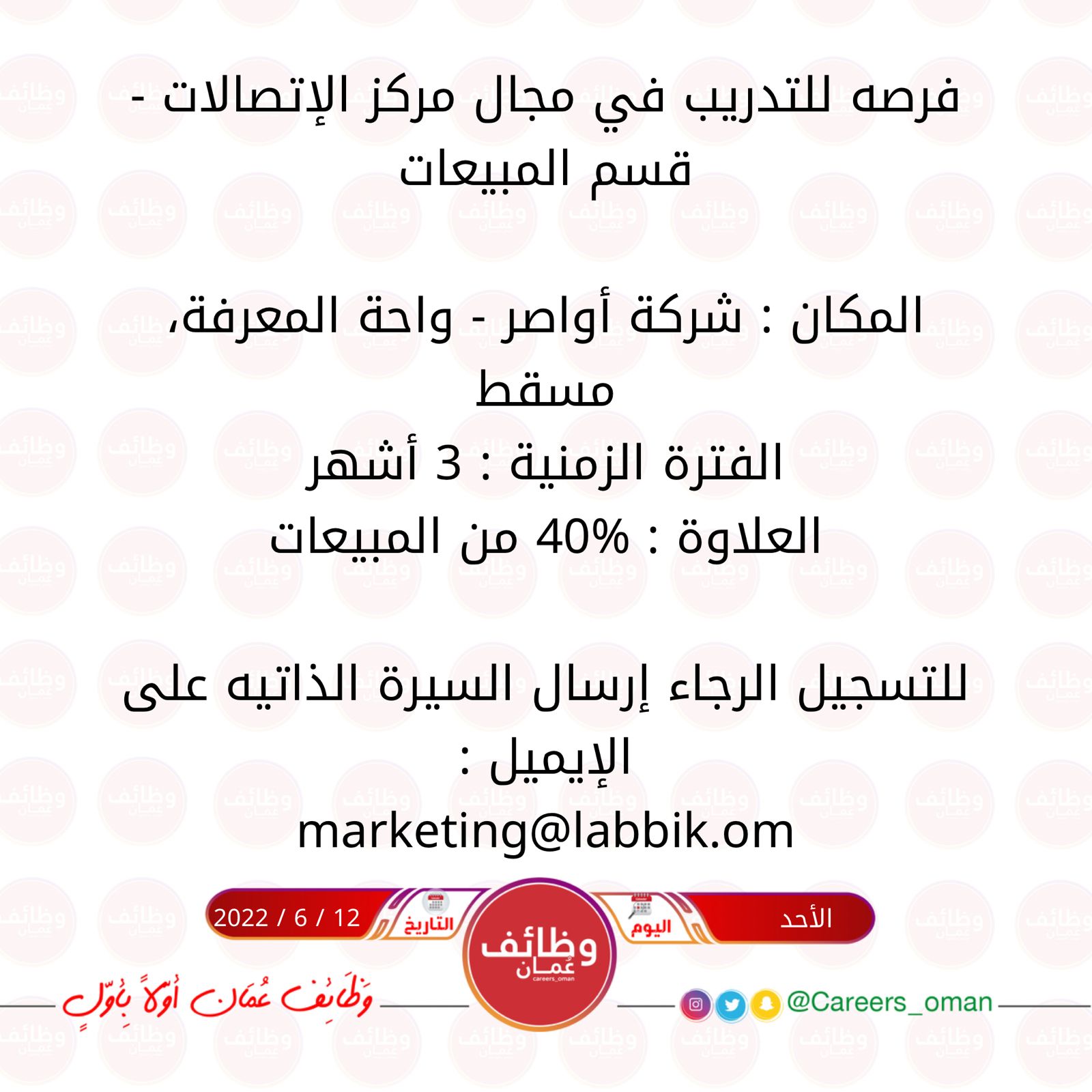 الموضوع: الاحد 12 / 6 / 2022 - شركة أواصر في مسقط - فرصه للتدريب في مجال مركز الإتصالات