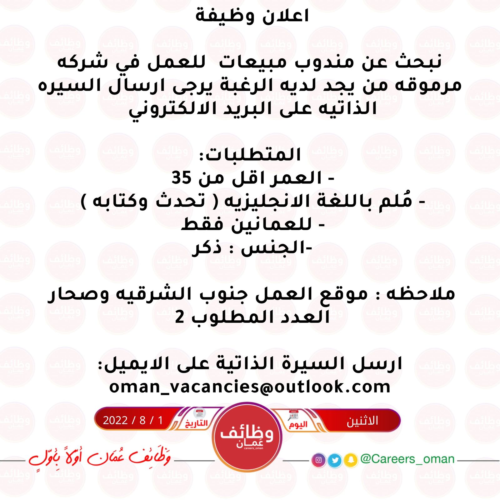 الاثنين 1 / 8 / 2022 - شركة رائدة - وظيفة شاغرة ( مندوب مبيعات العدد 2 )