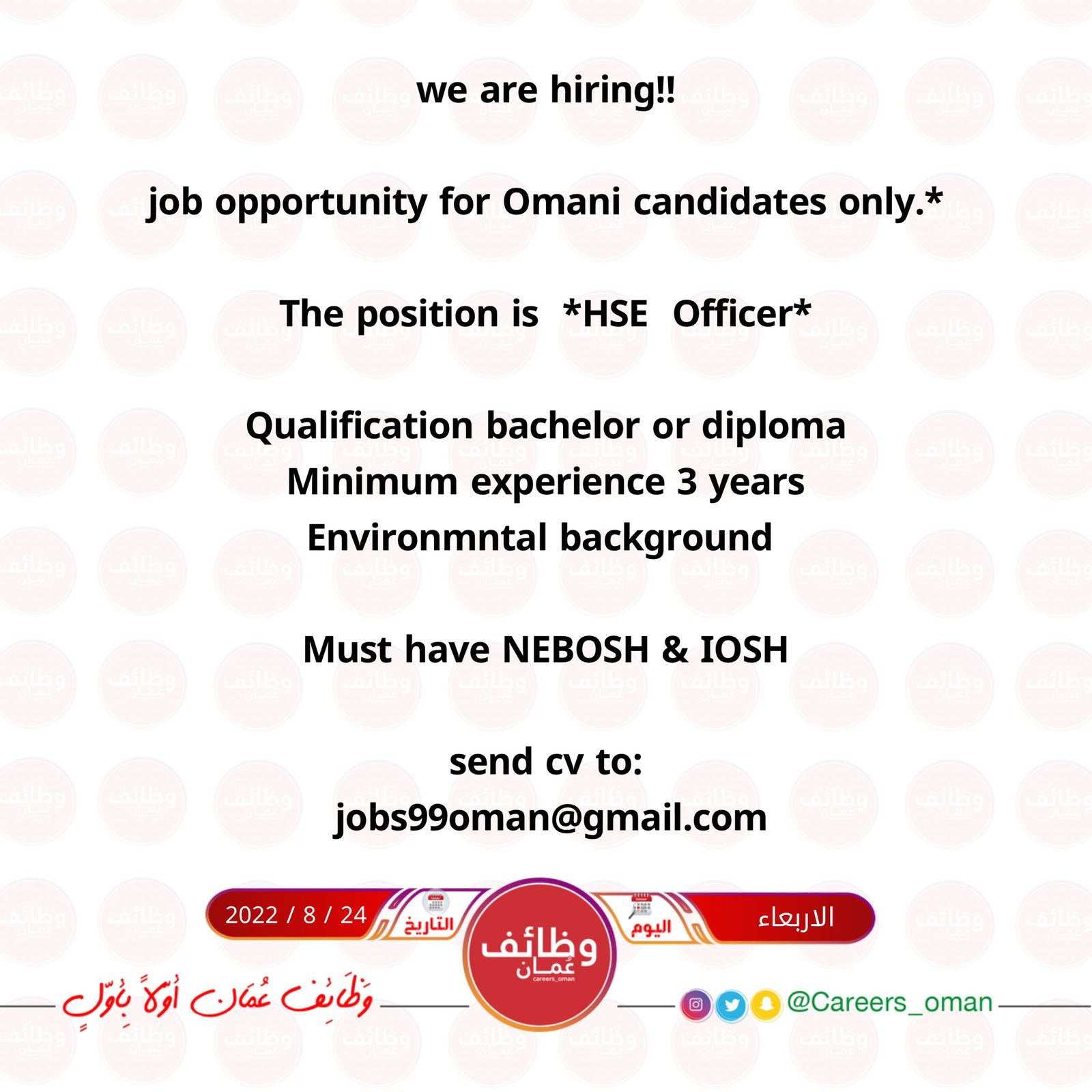 الاربعاء 24 / 8 / 2022 - شركة رائدة - وظيفة شاغرة ( HSE Officer )