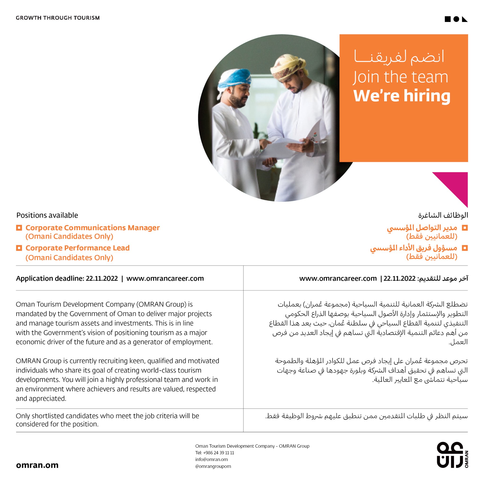 للتقديم يرجى زيارة الرابط التالي: http://omrancareer.com/