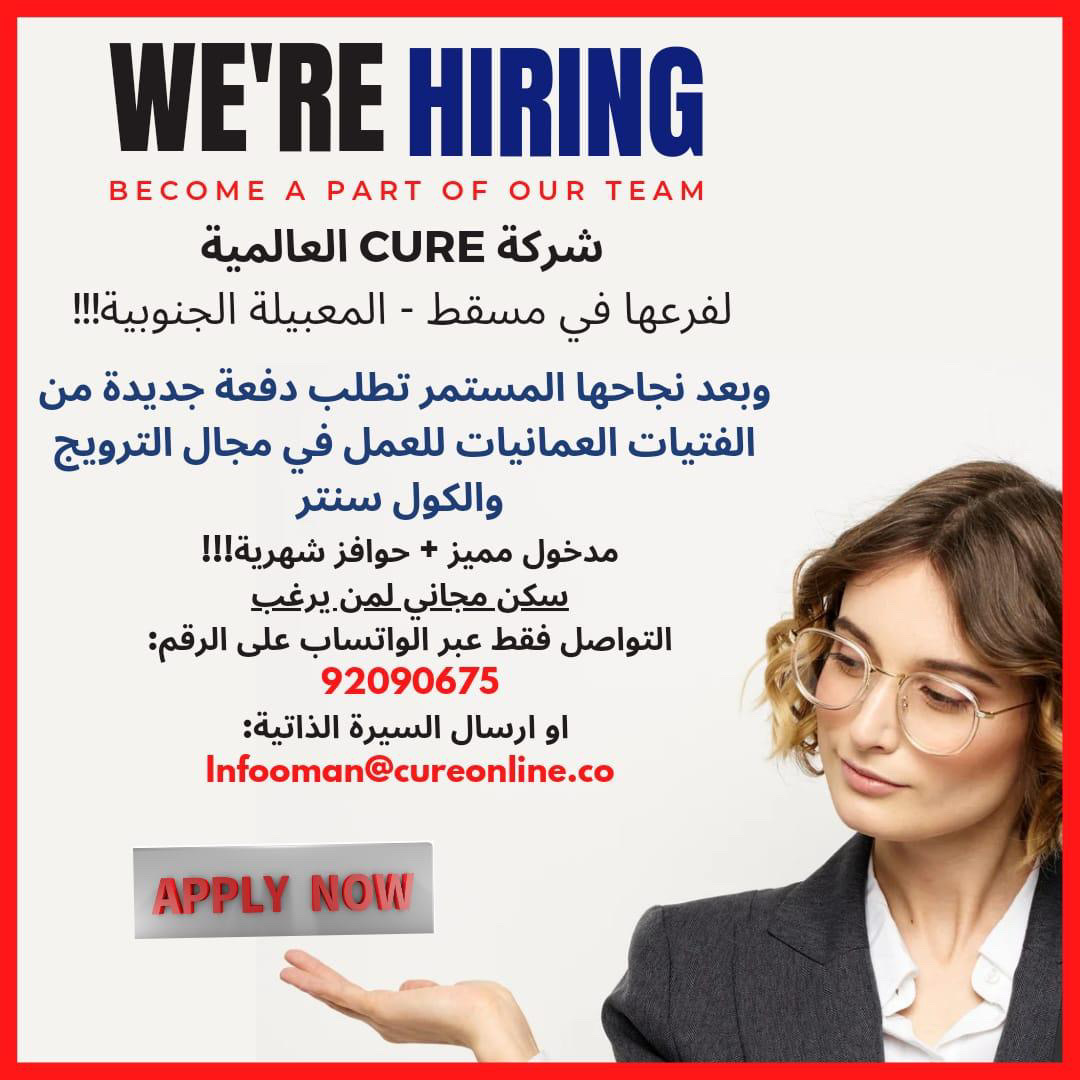 الموضوع: الخميس 1 / 12 / 2022 - شركة CURE العالمية في مسقط - فرص وظيفية شاغرة مجال الترويج والكول سنتر