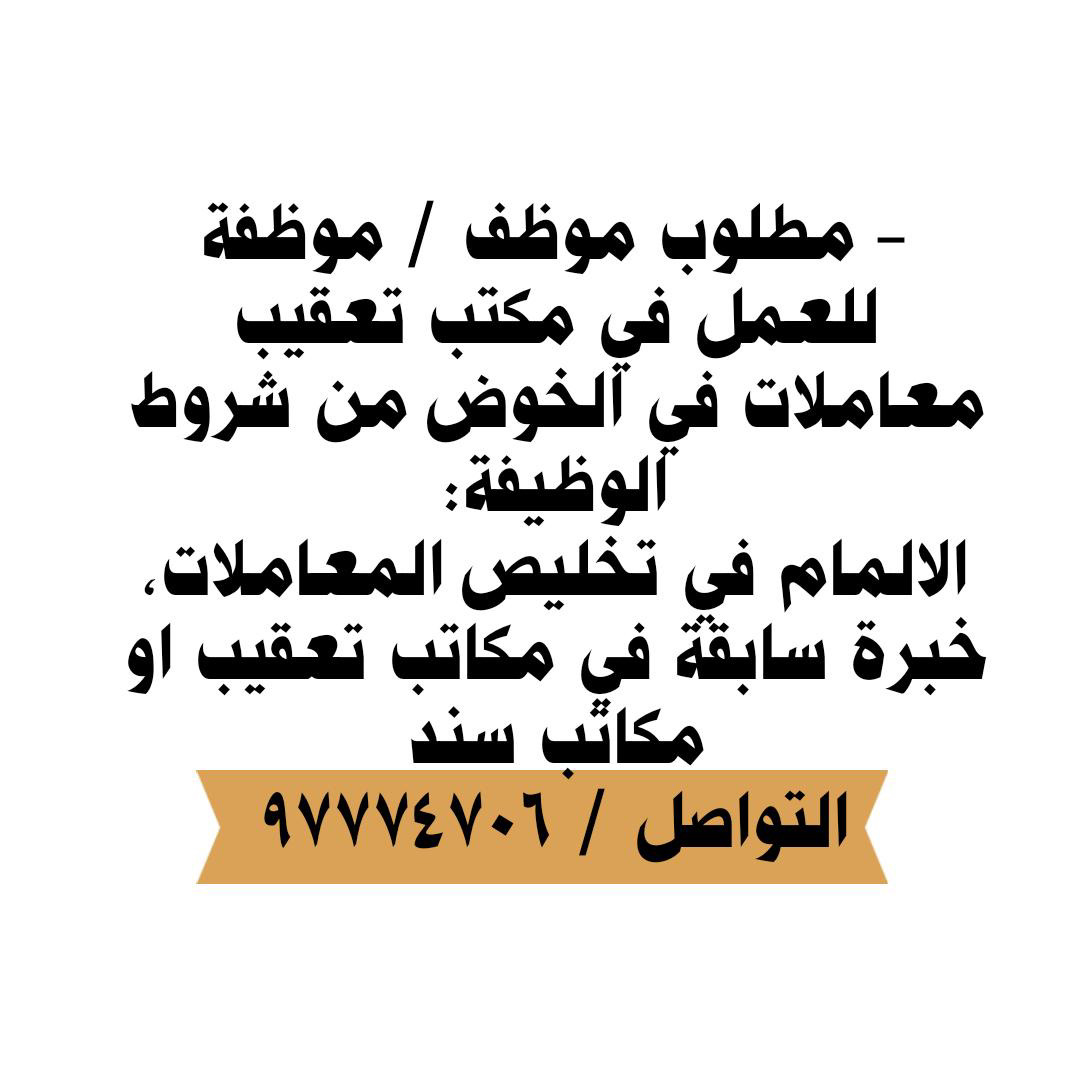 الاثنين 5 / 12 / 2022 - مكتب تعقيب معاملات في الخوض - وظيفة شاغرة ( موظف / موظفة )