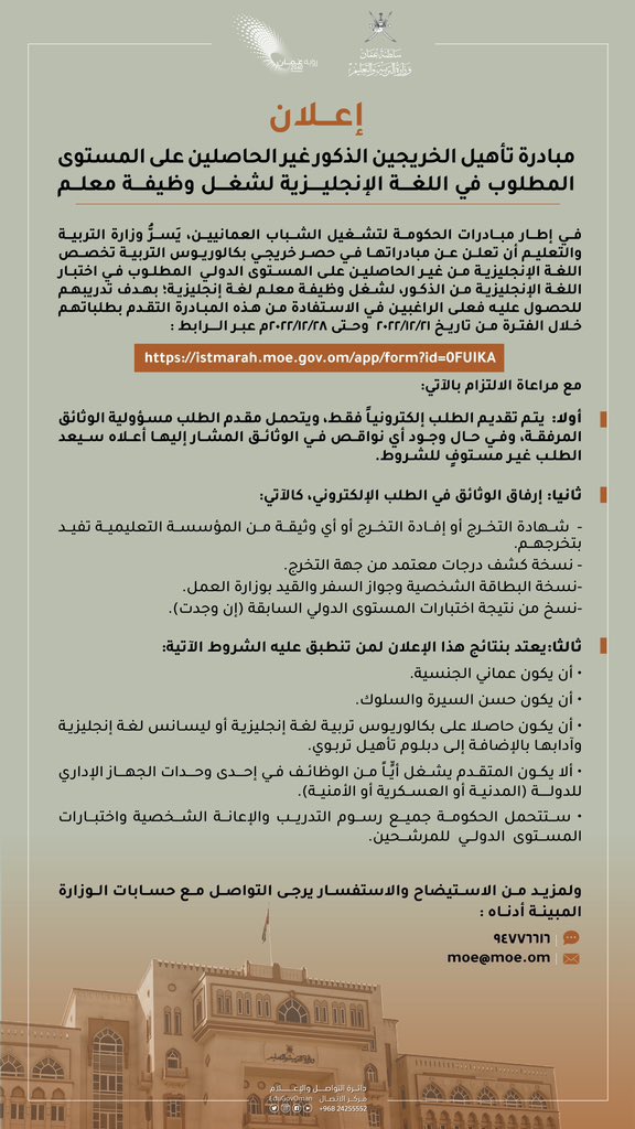 رابط التسجيل https://istmarah.moe.gov.om/app/form?id=0FUIKA