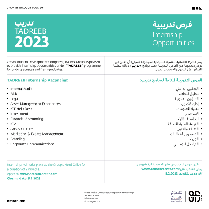 انستجرام : careers__oman تويتر : careers_oman قناة على التلجرام : careers_oman الفيس بوك: careersoman سناب شات : careers_oman تابع جديد الوظائف على أخبار جوجل https://news.google.com/s/CBIwpO6O2q...ar&sceid=OM:ar