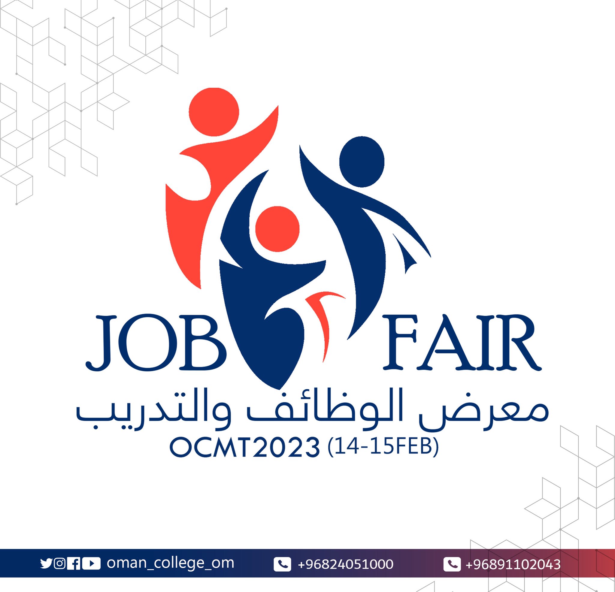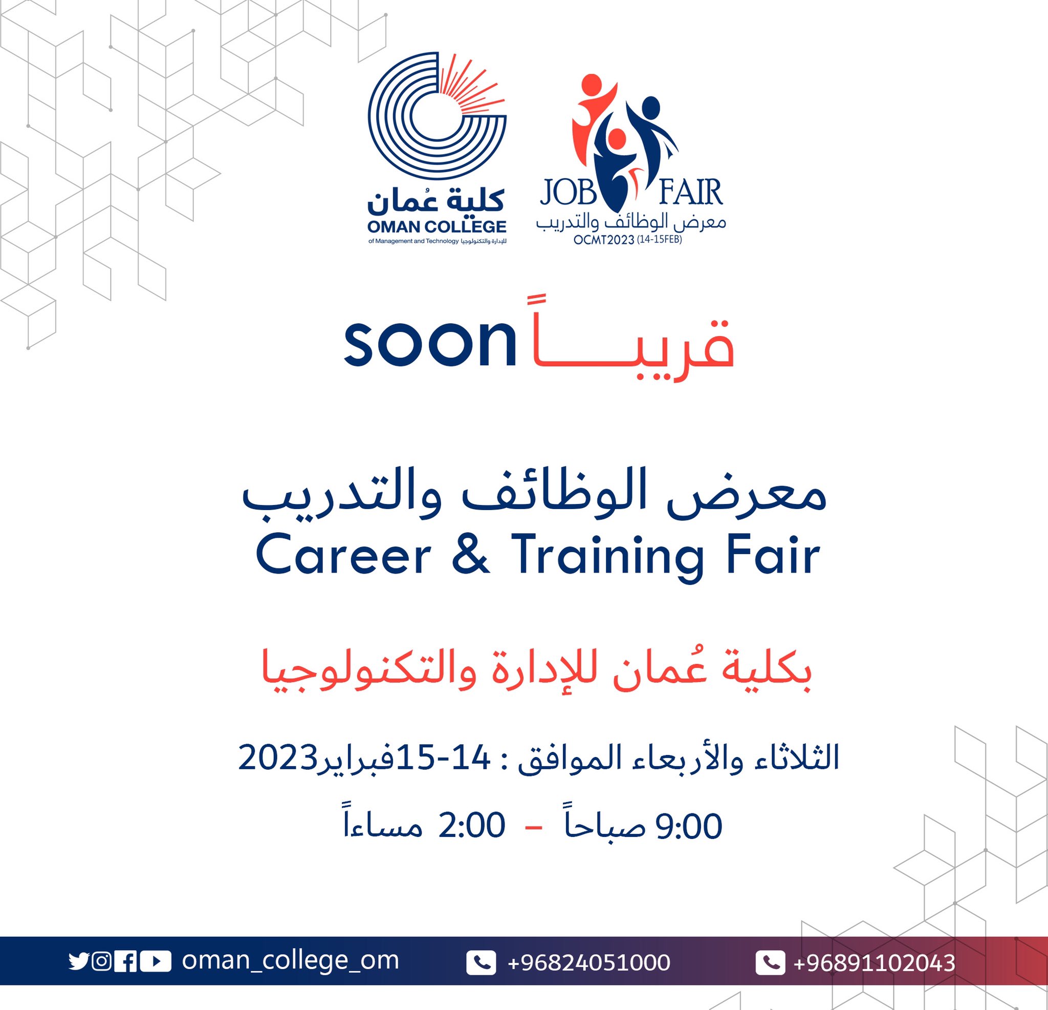 • الثلاثاء 7 / 2 / 2023 - كلية عُمان للإدارة والتكنولوجيا - فرص وظيفية وتدريب متنوعة للباحثين والباحثات عن عمل