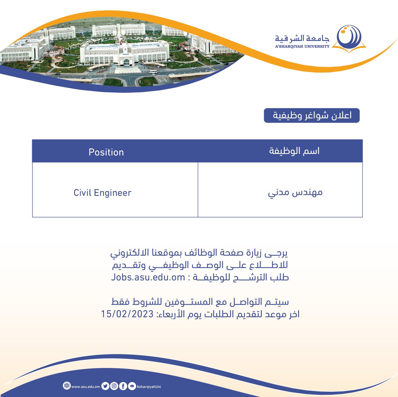 رابط التفاصيل والتسجيل http://jobs.asu.edu.om/Jobs/jobDetails/2038