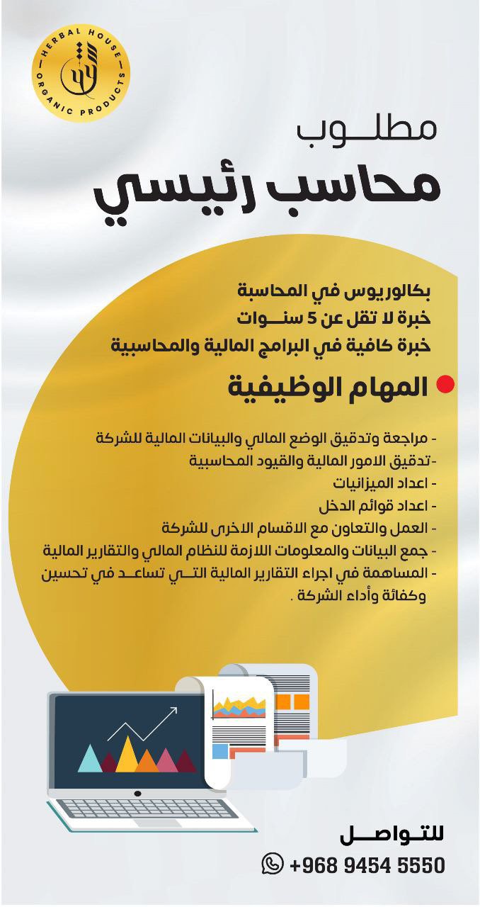 الموضوع: السبت 13 / 5 / 2023 - شعاع الشمس - وظيفة شاغرة ( محاسب رئيسي )