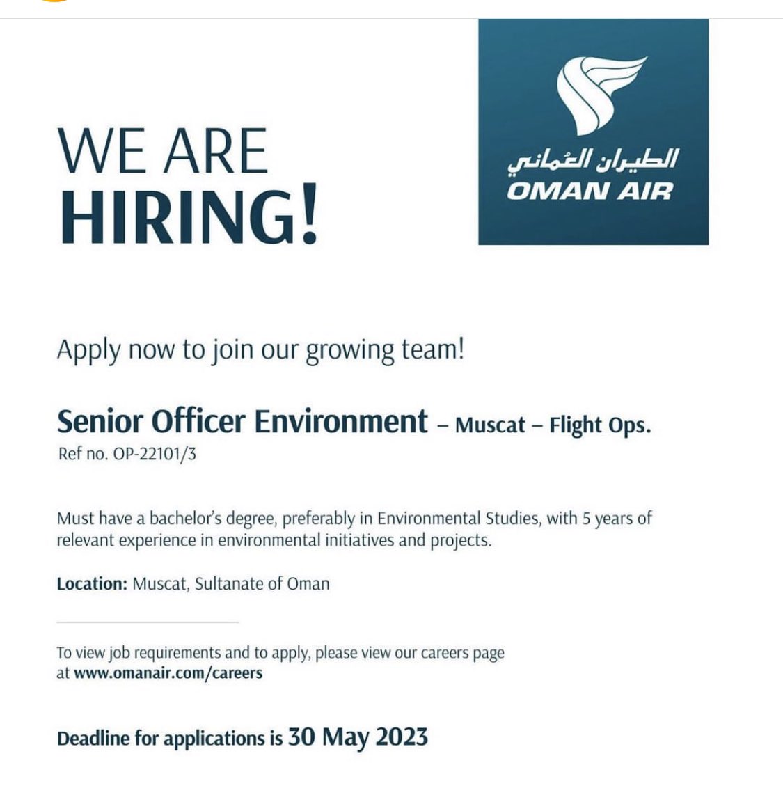 رابط التسجيل https://www.omanair.com/erecruit/gue...XIjXqHv2k5Gi34