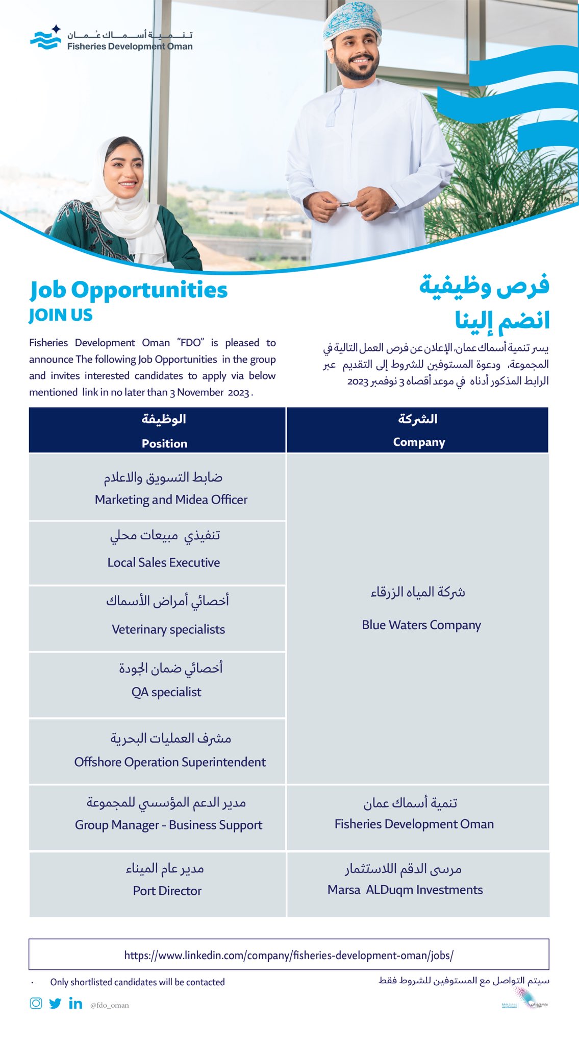 الموضوع: تنمية أسماك عمان - وظائف شاغرة