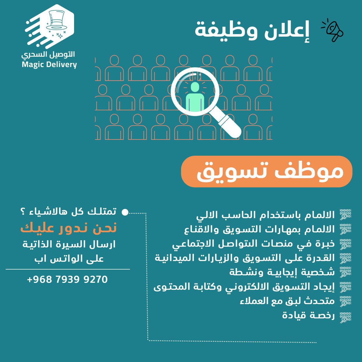 شركة التوصيل السحري - وظيفة شاغرة ( موظف تسويق )