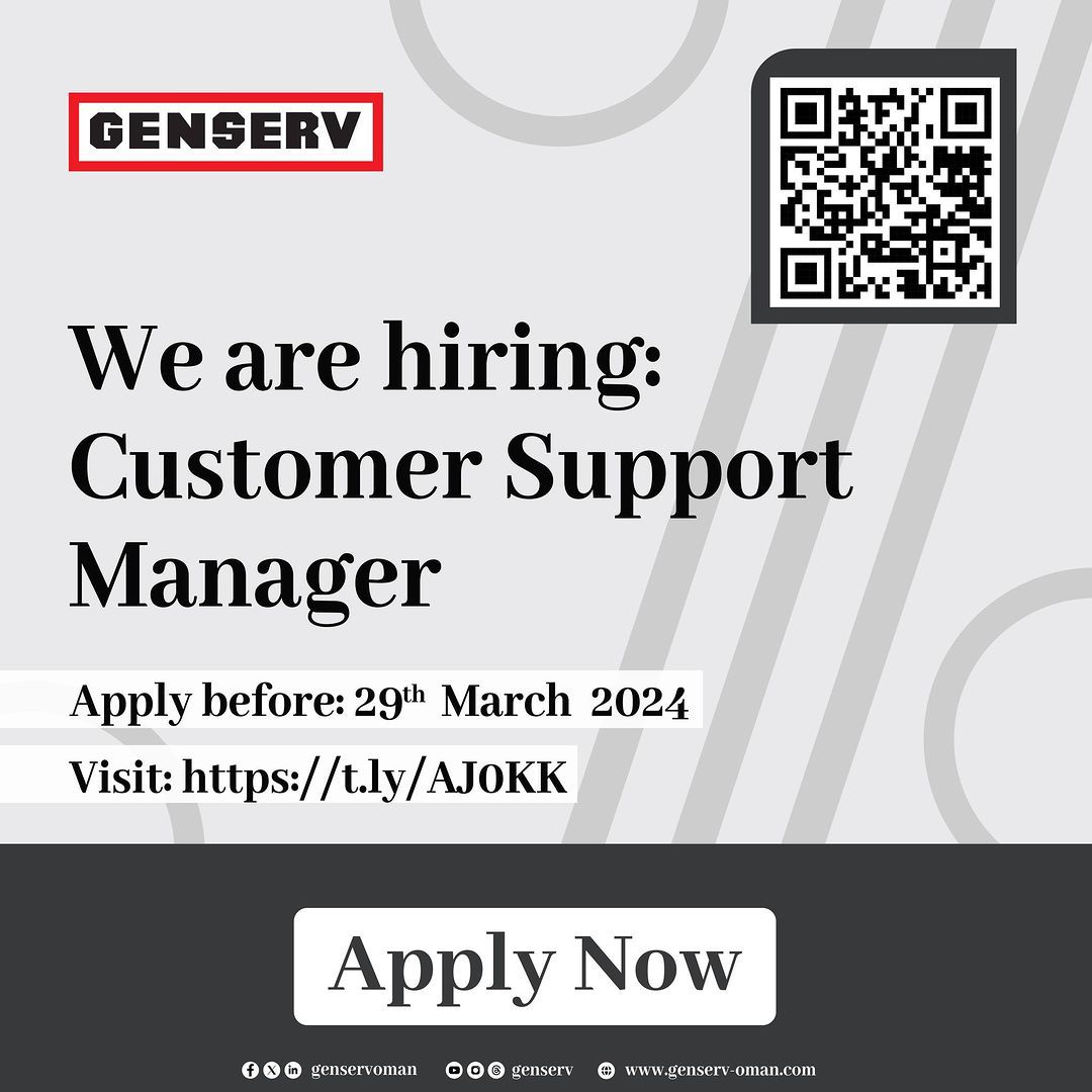 شركة جنسيرف - فرصة وظيفية ( Customer Support Manager )