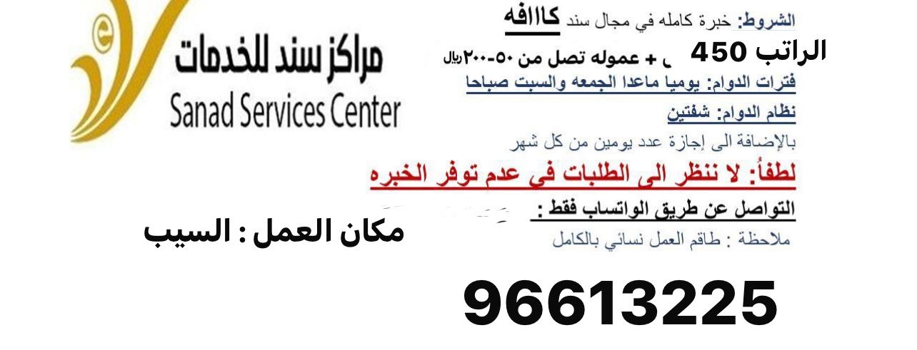 مكتب سند للخدمات في السيب - وظيفة شاغرة ( موظفة )