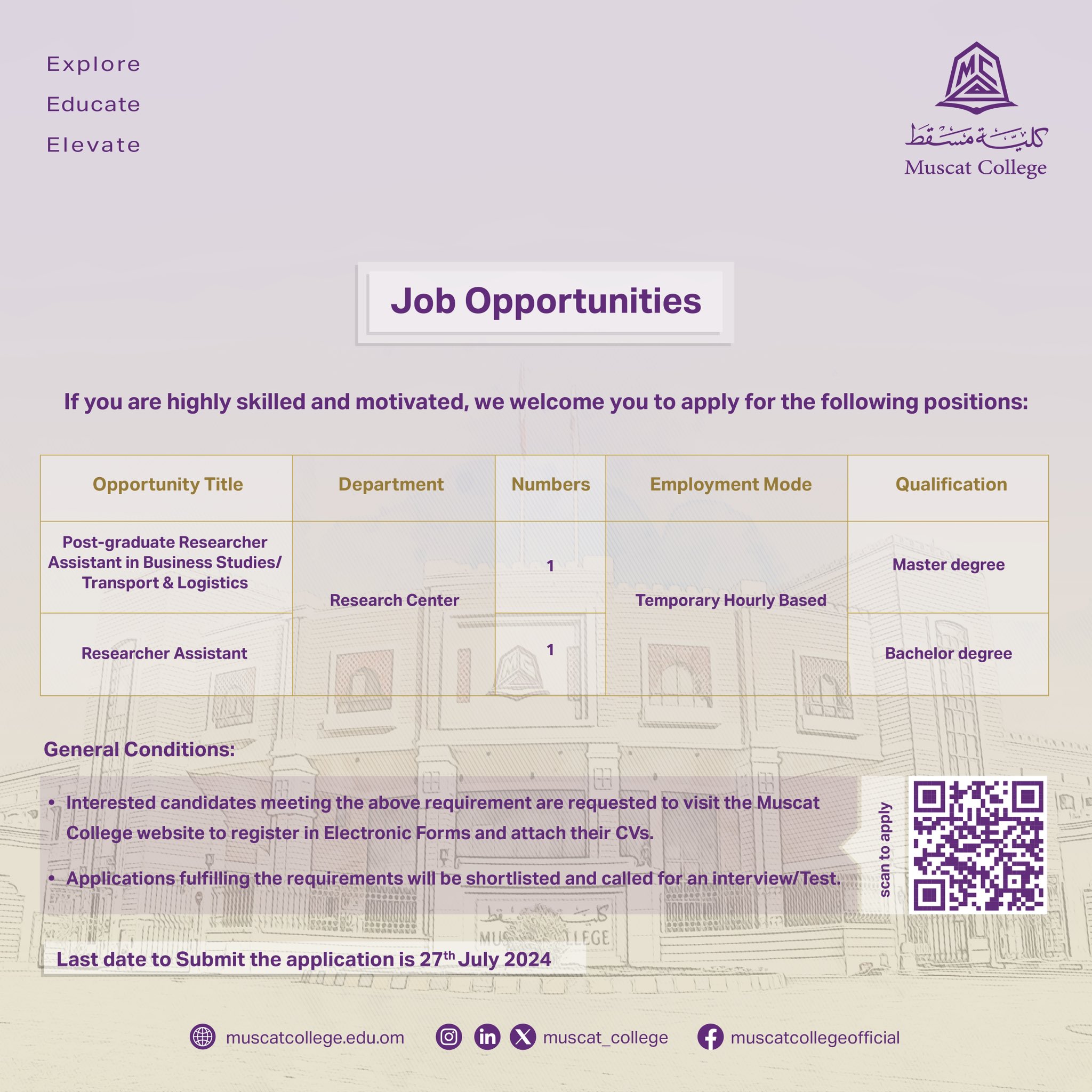 رابط التسجيل https://muscatcollege.edu.om/vacancies/