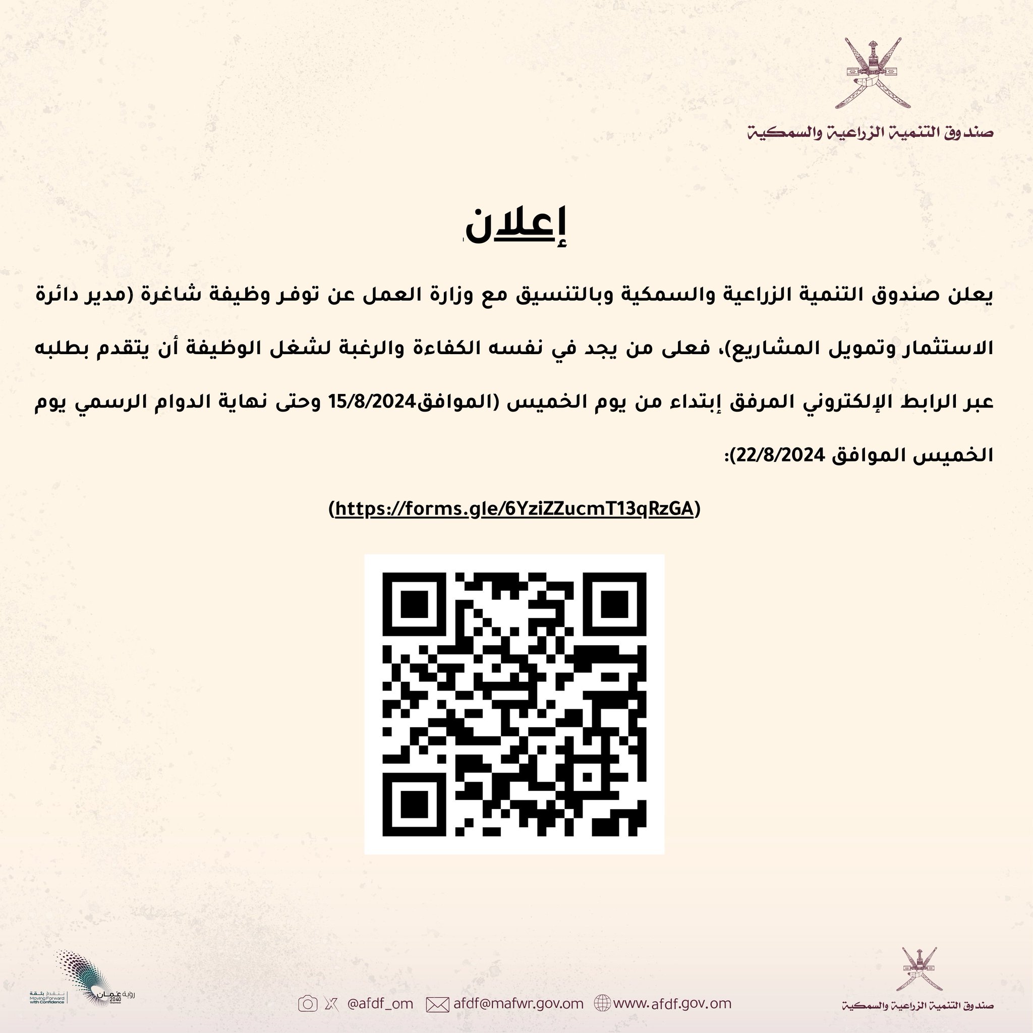 انستجرام : careers__oman تويتر : careers_oman قناة على التلجرام : careers_oman الفيس بوك: careersoman سناب شات : careers_oman تابع جديد الوظائف على أخبار جوجل https://news.google.com/s/CBIwpO6O2q...ar&sceid=OM:ar