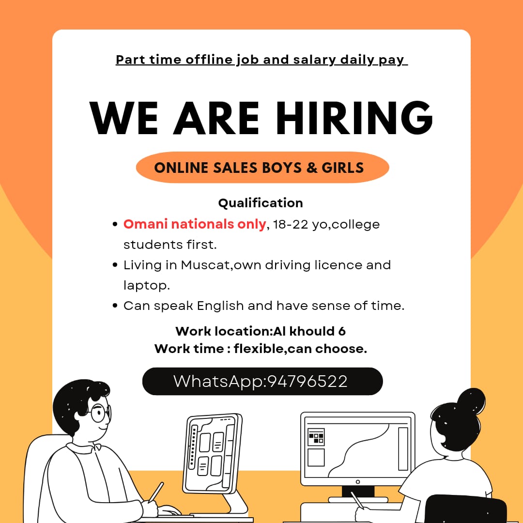شركة رائدة في مسقط - وظيفة بدوام جزئي ( مبيعات اونلاين )