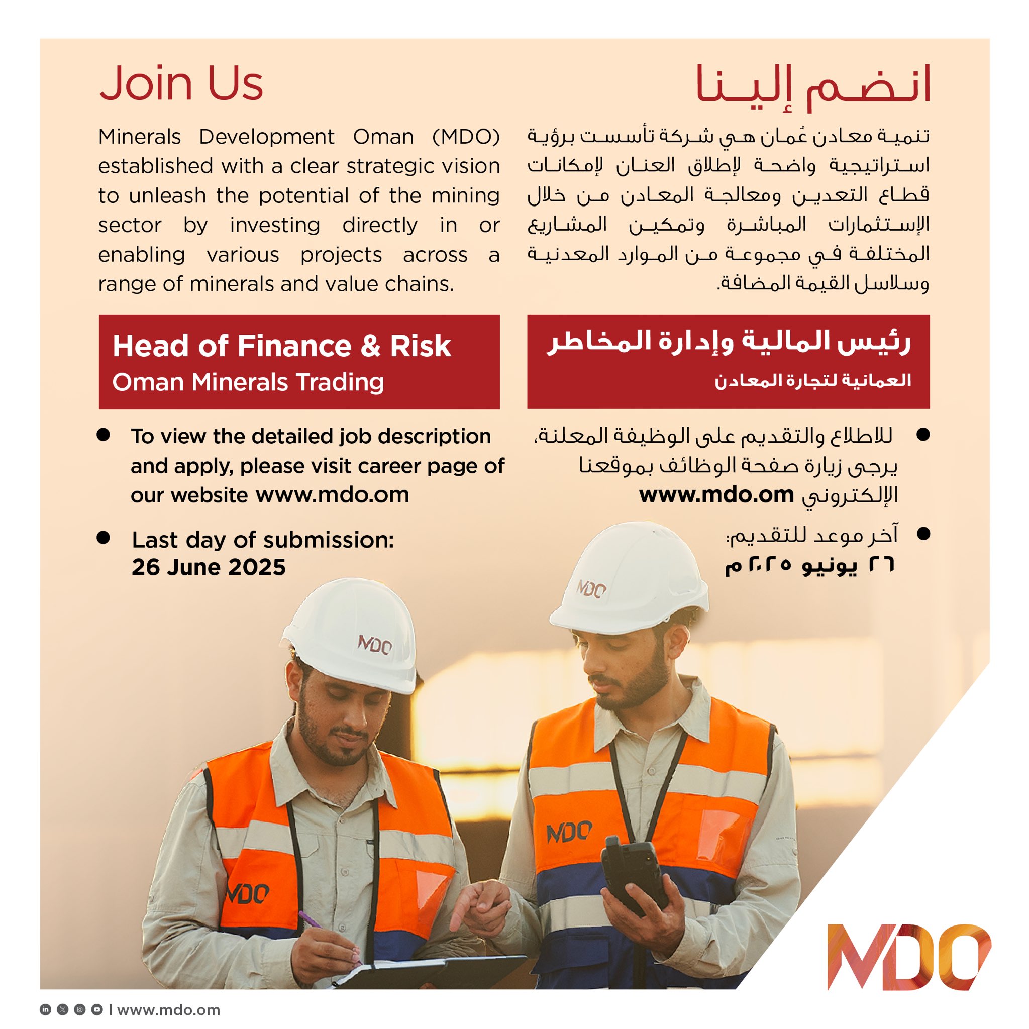 شركة تنمية معادن عمان - 5 وظائف شاغرة