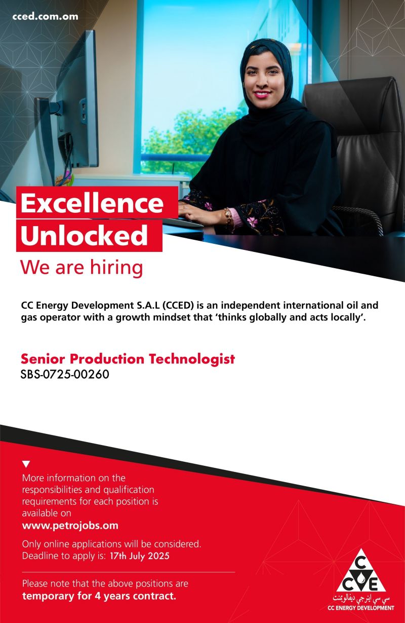 شركة سي سي إينرجي ديفالوبمنت - وظيفة شاغرة ( أخصائي أول تقنيات الإنتاج )