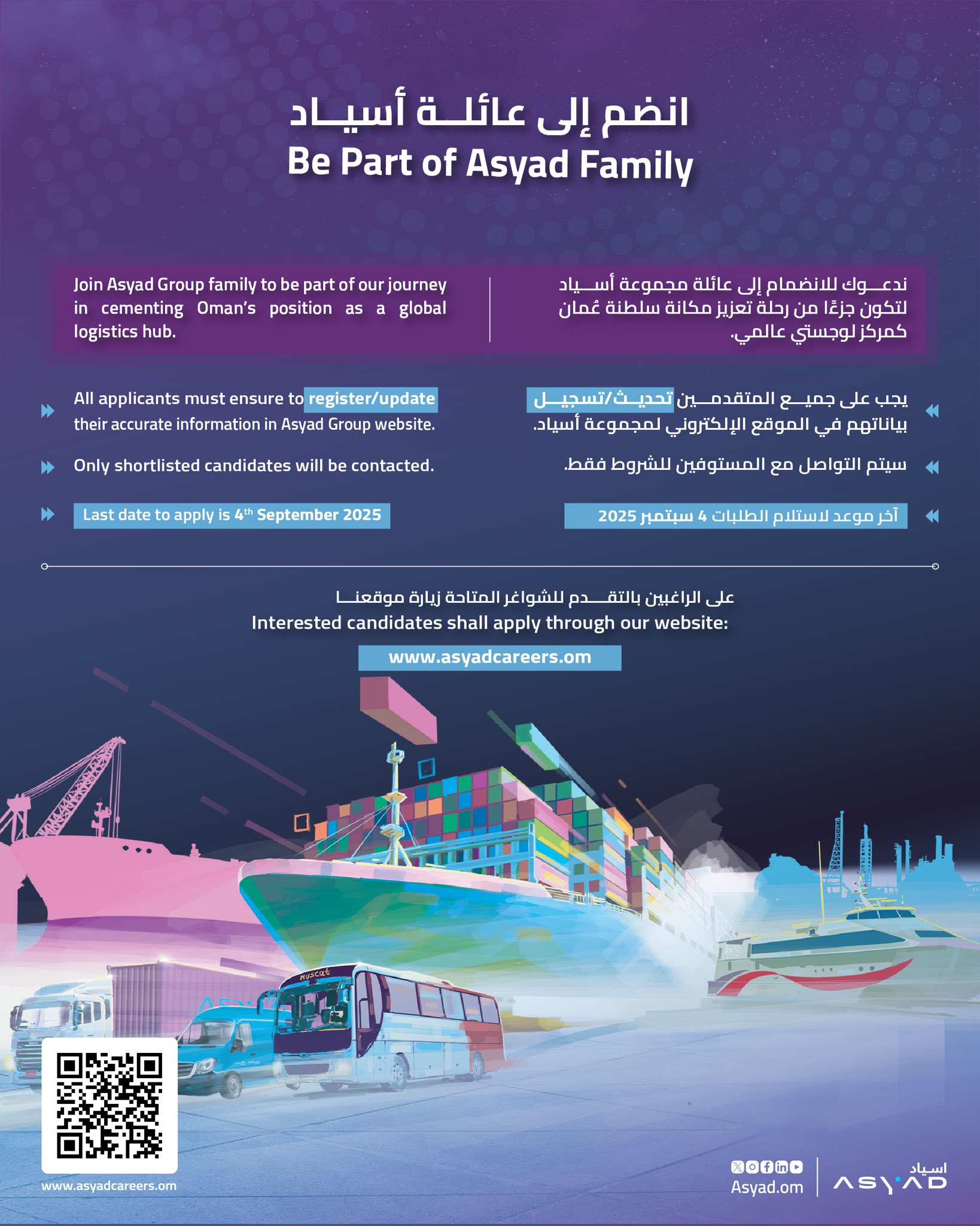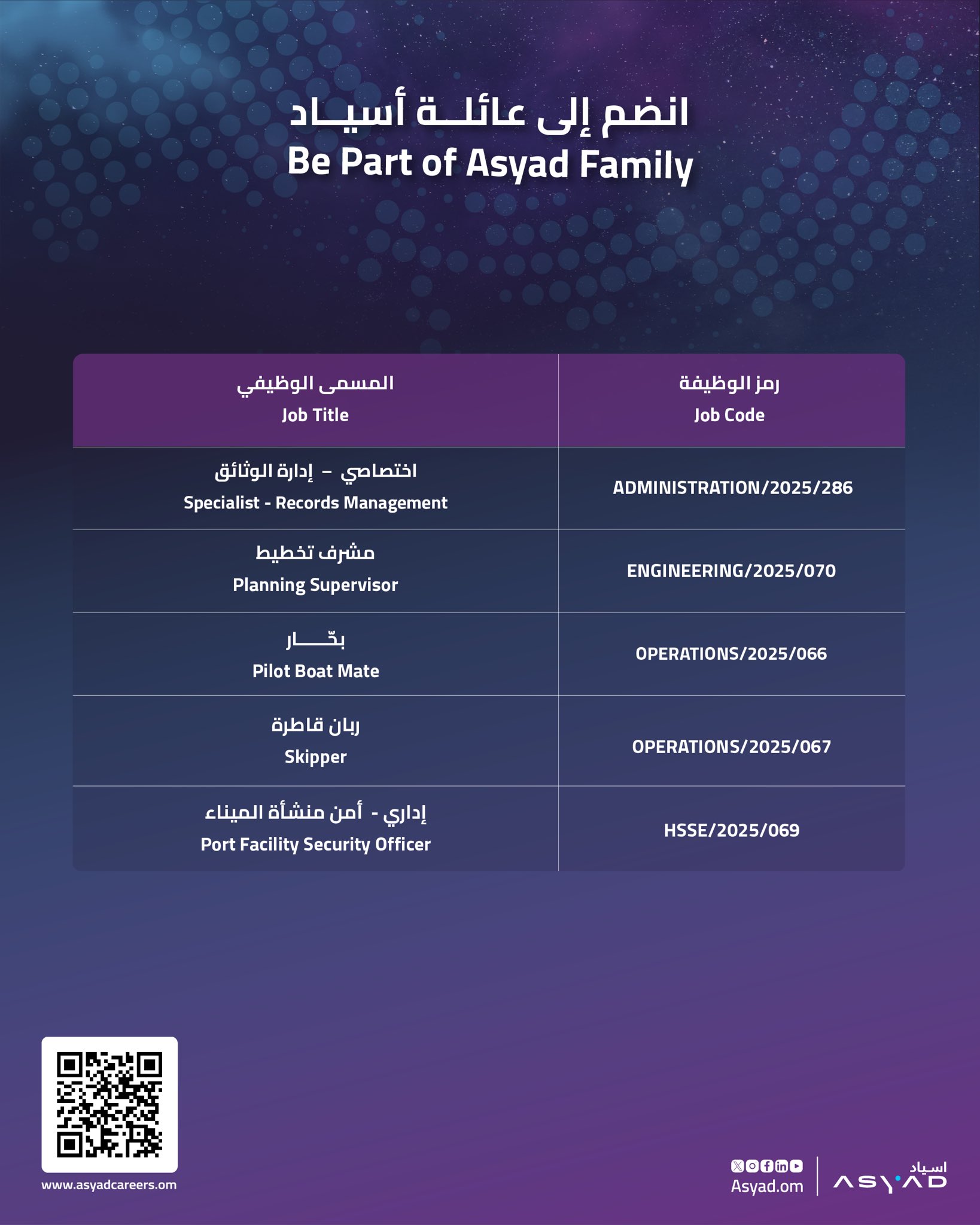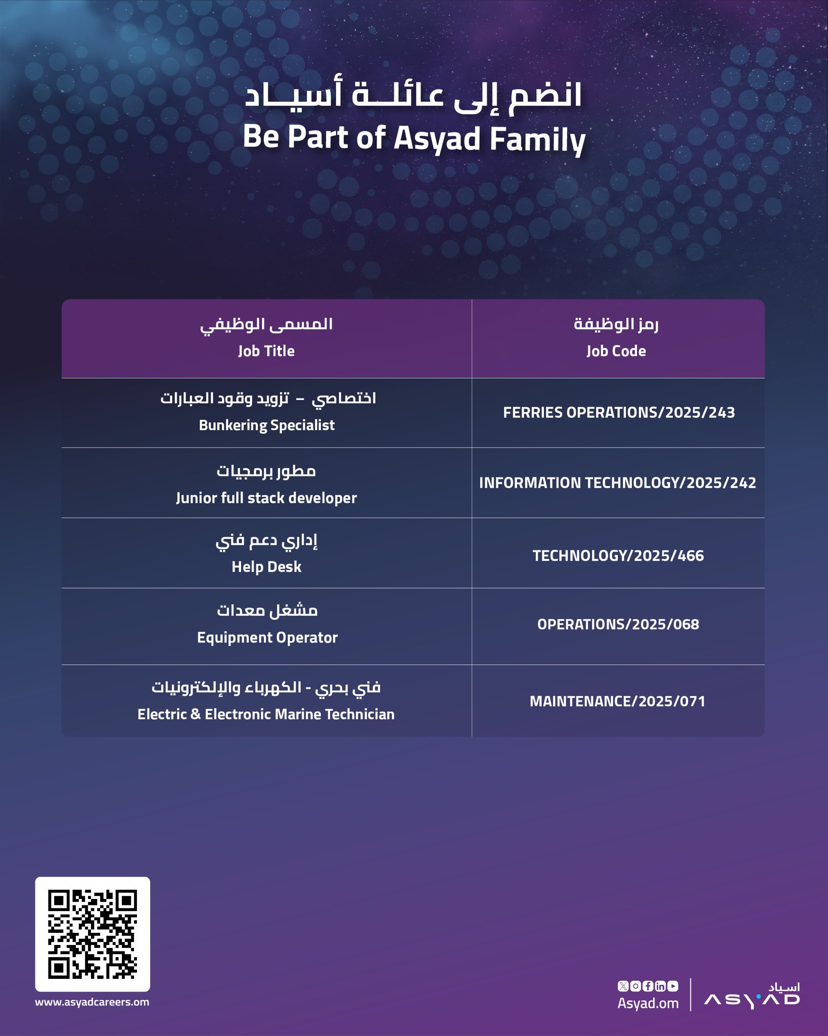 رابط التسجيل https://www.asyadcareers.om/vacancylist.aspx